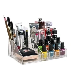Crafted from durable, crystal-clear acrylic, this organizer is not only stylish but also built to last. With 16 spacious compartments, it offers the ideal storage for your lipsticks, brushes, palettes, and other cosmetics, keeping everything neat, accessible, and easy to find. Whether you're a makeup enthusiast or just someone looking to keep things tidy, this is the storage solution you’ve been waiting for!